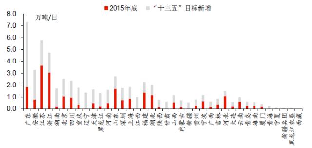 ??圖3 “十三五”期間各省新增生活垃圾焚燒處理能力目標排序